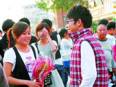 昨日下午4时许,黄兴路步行商业街中心广场突然传出一阵欢呼声,约30名手持玫瑰花的年轻人将一对男女围绕在人群组成的心形空地中。“我喜欢你!”在众多“快闪族”朋友的热情鼓励下,男生终于勇敢地说出隐藏心底的秘密。面对男生真诚的告白,女生点了点头。随后,“快闪族”迅速消失在围观人群惊讶的目光中。