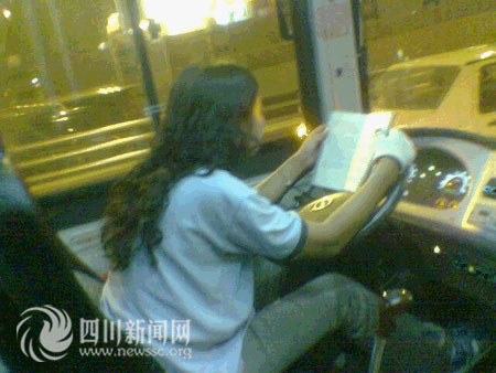 这位名叫“Miss Water”的网友在帖子中称,2009年11月7日18:40分,在人民公园站上公交车81路上,该车行使至天府广场附近,由于前方车辆拥堵,司机(工作证号为:001-6828)放慢行使速度,但令人惊讶地,她居然拿出一本书边开车边看书。