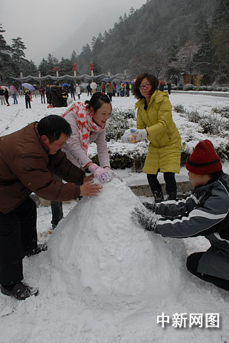 中新网成都11月19日电(苏杰)从18日晚持续下到今天上午十点的鹅毛大雪,把“童话世界”九寨沟的山林完全给裹住了。海拔1996米的景区门口,积雪达2、3公分厚,景区长海、箭竹海等海拔在2500米以上的景点,积雪厚度超过10公分。这是九寨沟入冬以来迎来的最大一场雪。