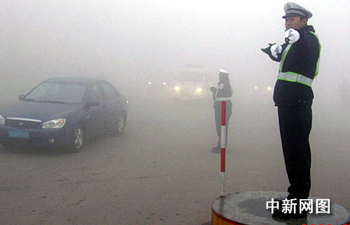 中新网新乡11月26日电(记者吴扬 通讯员牛国平)昨日一场入冬以来最大的浓雾突降中原大地,河南省新乡市交巡警支队及时启动恶劣天气下的交通安全管理预案,全市千余名交警冒着浓浓大雾迅速出警,守护在市区和主干公路的大路口上,指挥和疏导了数万辆过境机动车辆安全通行。