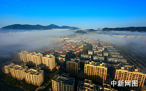 据介绍,从当日上午7时左右开始,象山半岛便成了“天上人间”,高楼、山脉如坠云里,部分明显,部分“隐晦”。随着太阳光线渐强,浓雾渐渐退去,整个过程持续近两个小时。