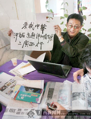 谈到这次来广西的行程时,沙拓希望能够有更多的人参与到这个活动中,并希望有商家支持这个活动。12月21日,沙拓将开始他的百色之行。记者曹哲虎 徐天保 实习生蓝天宁