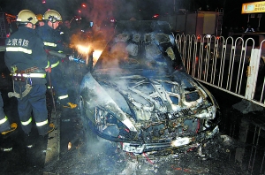 昨天(12月2日)下午5时40分许, 在北京长安街复兴路与永定路十字路口,一辆由东向西行驶的本田轿车等红绿灯时突然起火,采石路消防中队及时赶到将火扑灭。由于事发时正值晚高峰,事故造成长安街拥堵近一个小时。