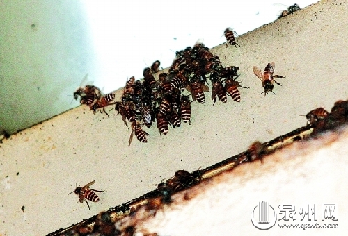 昨日(8日)中午,上万只蜜蜂突然浩浩荡荡地“杀入”泉州开发区的一家沙县小吃店,顾客四下逃走,店主抱着几个月大的孩子躲藏在楼上。情急之下,店主张先生点燃报纸,对蜜蜂烟熏火攻。然后,他身披棉被、怀抱幼儿夺门而逃。