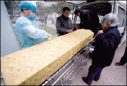 尸检结束后孩子尸体运上车。