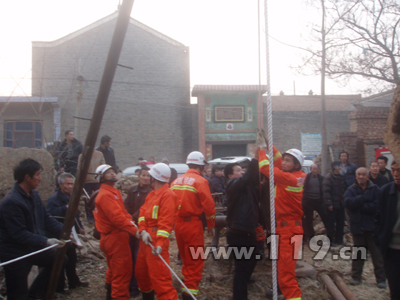 2009年12月13日14时30分,稷山县公安消防中队接到稷山县公安局指挥中心指令,称稷山县翟店镇宁南村一水井(约150米)一人被困,请求救援。接警后,中队迅速出动1辆消防车,8名官兵携带必要的救援器材赶往现场。