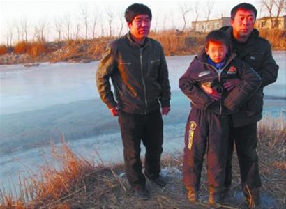 刚一上岸,冯福文身上的衣服就冻成了冰坨,浑身颤栗的他顾不上安危,向着孩子大声呼唤。由于在冰水里浸泡时间过长,且受到了惊吓,此时小男孩全身冰凉,两腿僵硬。