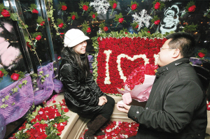 “我已准备了一个多星期,订花、订钻戒、订包厢,都安排好了。”29岁的王先生与女友相恋7年,“我俩都是大连人,定好12月30日回大连办理结婚登记,可我总想给女友一个浪漫的求婚。”王先生说,他选择22号包厢作为求婚地点,象征成双成对。求婚时捧着108朵红玫瑰,花语是求婚的意思,包厢里的花盘由600多朵红玫瑰组成。