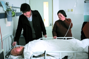 看到王师傅的情况,大家都赶紧上前扶住他。这时,王师傅双眼紧闭,身上已经瘫软无力了。“应该是处于半昏迷状态吧。”镡立军说,大家怎么叫,王师傅也没有反应,他立即拨打急救电话,将王师傅送到附近的北京军区总医院。
