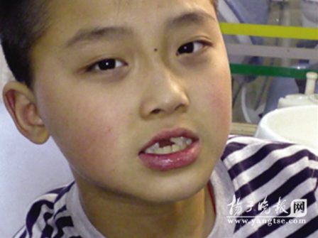 小学生磕掉一颗半门牙
