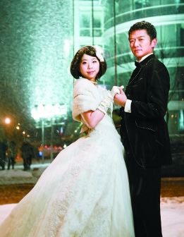 “我们5年前的一个雪天里开始相恋,一定要在美丽的冬天拍婚纱照。当2010年的第一场雪飘飘洒洒地落下时,我们立刻跑到了婚纱摄影楼,恳请摄影师打破预约惯例,为我们拍摄雪中婚纱照,没想到摄影师答应了,紧急化妆,冒着严寒、顶着大雪把我们带到了金宝街,连夜拍下了一组最珍贵的照片,或许我们是今年第一对在雪中拍婚纱照的新人吧……”1月3日晚上,北京大雪纷飞,周围的人都穿着厚厚的羽绒服,戴着帽子、裹着围巾,而岳小姐穿着薄薄的婚纱,在雪中和心上人拍摄了一组婚纱照。
