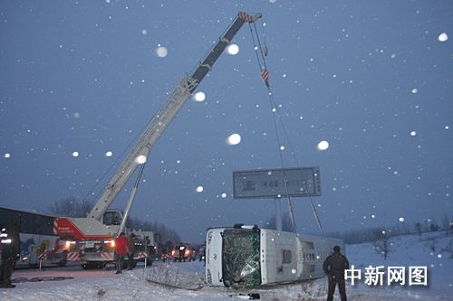 雪后路滑 哈牡高速两辆客车侧翻10人受伤(组图)(2)
