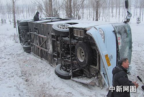 雪后路滑 哈牡高速两辆客车侧翻10人受伤(组图)(3)