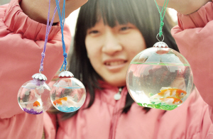 近日,天津市场上一种名为“招财鱼”的装饰品很受年轻人青睐。金鱼被密封在一个提前充入氧气与营养液的玻璃器皿内,大约可存活半年。动物保护主义者认为,金鱼在这种密封的玻璃器皿内只有很小的生存空间,在一定时间后,由于营养液与氧气的耗尽而死亡。这种装饰品容易对青少年尤其是儿童产生不良影响。