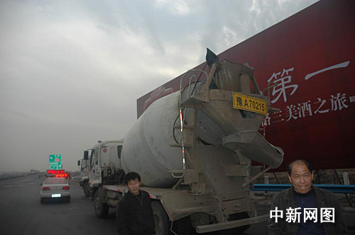 中新网郑州1月25日电 (记者 徐华美)俩司机拉载搅拌机车后面嫌小号牌不好安,就自制超大号牌,既能当后车牌,又能当放大号牌,被高速交警查获。