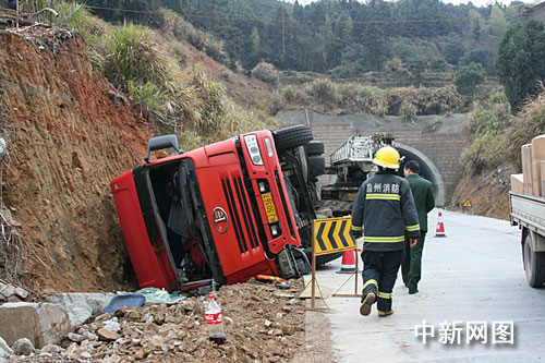 据了解,石油气槽罐车的驾驶员姓陈,山东人。凌晨0时左右,他正驾驶着满载22.6吨石油液化气的槽罐车,从南京开往福建。“我从湖雾岭隧道出来驶至乐清市湖雾镇永丰村口时,有一辆逆向行驶的小面包车,我为了避免撞车,就踩了紧急刹车,车子一打滑就翻到在地上。”陈姓驾驶员告诉记者。