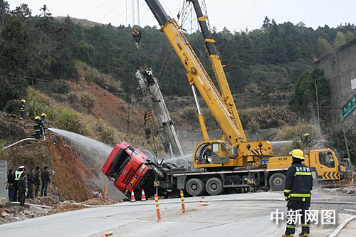 消防部门立即赶赴现场,首先通知当地电力部门切断该村电源。在隔绝一切有可能引发火灾的源头后,消防人员又迅速喷水对槽罐车进行冷却,直到下午13时许,槽罐车成功被吊起,对车进行全面清洗后才安全撤离。(完)