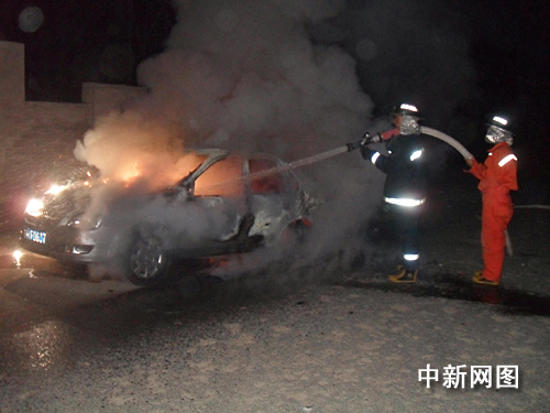 中新网淮安2月3日电 (衡中强 黄志波 朱晓颖)3日清晨,江苏淮安市涟水县涟漪路上水立方休闲中心门前,一辆雪弗兰轿车在行驶过程中莫名自燃,大火被随后赶到的消防官兵扑灭。奇怪的是,车辆起火后,车主跳下车便消失得无影无踪,直至火灾被扑灭,车主仍未现身。