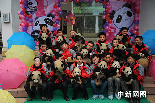 记者了解到,2009年是卧龙大熊猫研究中心首次在雅安碧峰峡基地大规模开展大熊猫繁殖工作,雅安基地的海拔、气候均与卧龙基地有很大差异,加上汶川大地震给大熊猫们带来的心理及生理的影响,2009年的繁育工作面临很大困难。去年2月至5月,在成年大熊猫们进入发情期期间,工作人员创造最好的条件,让发情的大熊猫们在最佳时机选择心仪的对象进行自然交配,同时对自然交配不成功的雌性大熊猫进行人工授精。从7月至9月底,研究中心共有13只大熊猫产下了16只幼仔,6雌10雄,其中大熊猫“娜娜”、“甜甜”、“帼帼”均产下双胞胎,为大熊猫这一濒危种群注入了新鲜的血液。