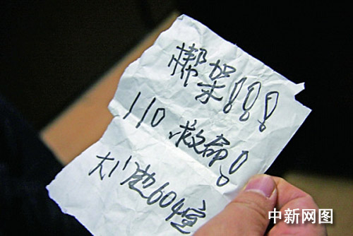 2月2日,杭州文新派出所民警接到110指令:有嘉南公寓保安捡到纸条数张,纸条内容称:“木帮架(注:绑架),110救命!门边604室。”