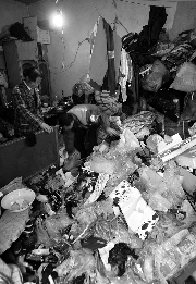 “赶紧上屋里坐坐。”张阿姨很热情地邀请我们进屋。20多个平方的小屋里,只放了一张床、一张小饭桌,别的地方都堆满了捡来的废品,一股异味迎面扑来。