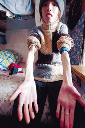 由于太过瘦弱,王聪的身体基本上就是“皮包骨头”,他的胳膊只有正常人的1/3粗。据他讲,在他4岁时,就被查出身体有病。为了给他看病,爸爸每天都很操劳,结果在他上初一时,爸爸因为积劳成疾,又耽误了治疗,不幸去世。为了给他治病,爸爸去世二年后,妈妈又带他去了北京。结果医生告诉妈妈,他得的是一种先天性疾病,在他之前全世界可能只有两三个病例,根本没有办法治疗。