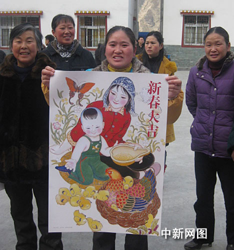 中新网映秀2月9日电(刘忠俊 王程)2日8日,文化部“吉祥新春,温暖同行” 送春联年画下基层活动在“5.12”震中映秀镇老街村村民活动中心广场举行。