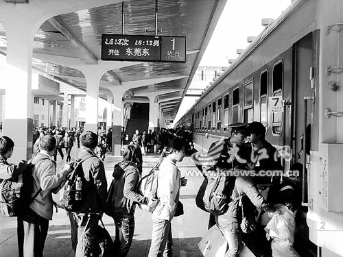 在人挤人的状态下,大家都找到了自己的“位置”,或坐或站,走道上,开水房旁……22日6时25分,L613次列车将完成它的首趟运行任务,安全抵达东莞东。