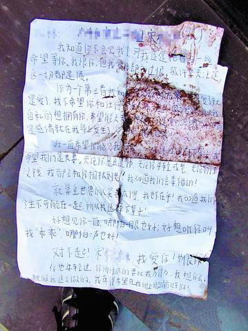 郭某在遗书中对父亲说:“不孝的女儿千万个对不起,也无法报答你对我的养育之恩……我离开后,一定要让宋××来再见我一面。”