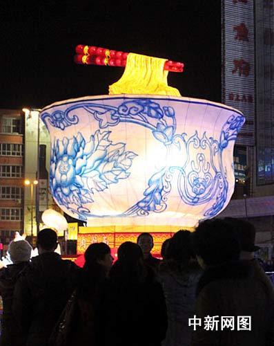虎年春节,兰州迎春灯展璀璨登场,巨大的“牛大碗”灯在城市中央非常醒目。张玉玺 摄