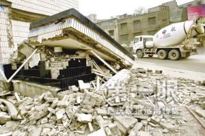 2005年12月14日,一罐车失控冲进路边四公里村立石组115号5层高的居民楼,楼房变危房,2死2伤。