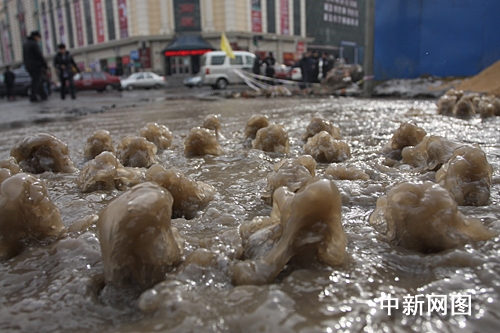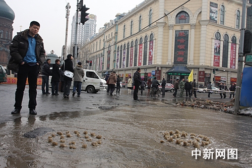 中新网哈尔滨3月4日电 (赵轶男)今天4时许,哈尔滨市道里区透笼街与兆麟街交口附近,一个直径75毫米的供水管线断裂,致使大量的积水涌入一地下商场,导致60多家商户无法营业5000余件衣服被水浸泡。