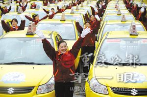 昨日,重庆公运出租公司的56名的姐,度过了一个特殊的三八妇女节——她们驾驶的56辆出租车,组成我市首支巾帼文明出租车队,表示将为乘客提供更贴心服务。