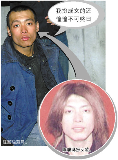 侦查员在陈聪聪遗留下来的包内发现假发1顶、皮包3个、眼镜两个、钱夹1个(内有50元现金)、摩托罗拉手机电池1块、各种衣物11件以及洗漱用具等物品。还有其脱逃后为买伪造身份证件拍的8张一寸照片,拍照时均戴着假发伪装。