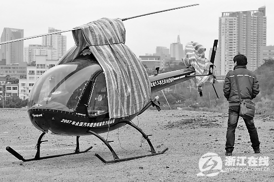 昨天下午,记者在温州杨府山看到了朱先生的这架两人座的罗特威Exec162F直升机。同时,民航华东空中交通管理局温州空中交通管理站的工作人员也来到了现场,并一再要求朱先生保证在没有任何审批手续的情况下,不能再飞行。