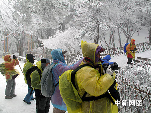 中新社黄山3月9日电(张启飞)天描雪景玉为地,春醉黄山香满门。受冷空气影响,3月8日9时许,安徽黄山风景区瑞雪纷飘,游人置身忘情,流连于浩瀚雪景中,领略“北”国风光。