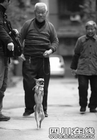 77岁的周大爷是小狗的主人,他告诉记者,小狗长时间站立行走并不是他们驯的,而是买回来就会。这是一只外表普通的吉娃娃,是周大爷的儿子周文志两年前特地花几百元从河北购回。当时,在河北工作的儿子坐火车又赶汽车,把这只小狗从保定带回成都。