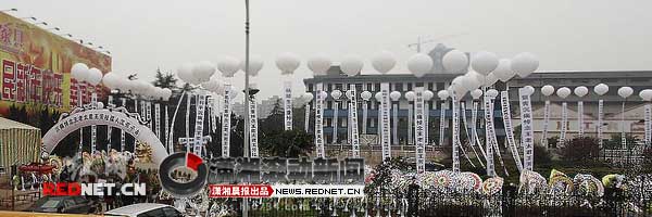 白色的气拱门、白色的升空大氢气球,气球下挂着白底黑字的长条幅,条幅上是一幅幅挽联……如此热闹的阵势,并不是拍摄电影的场面,帖子说据称是衡阳某房地产商母亲去世的宏大祭奠场面,是在华新开发区立交桥旁拍的,并感慨说,“看看人家这排场,才知道大操大办是什么概念!”