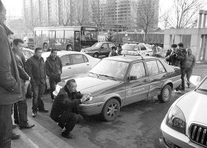 交警大队一楼103事故处理室门前,记者见到好多人都在伏案写字。“老长时间不写字,现在让写事情经过都困难死了……”一男子边写边喃喃自语,记者粗略看了一下至少有四五个人都在写,“我们都是倒霉的,我们的车都是被那喝醉酒的捷达小子撞的,多耽误事啊!”原来写东西的人都是这起事故中被银灰色捷达轿车撞伤车的司机。