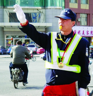 老王不仅恪尽职守,而且还把欢乐传播给路人,熟悉他的人都称他为“最认真最温馨的交通协管员”。
