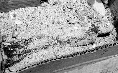 当日上午,记者赶到现场后,看到几名公安人员已经将这颗“炸弹”挪到一个箱子里。记者看到这个酷似“炸弹”的铁疙瘩长约15厘米,上边沾着斑斑锈迹。该厂的负责人告诉记者,“炸弹”是在红土里发现的,这些红土是三年前从红山根拉来的,准备用于冬季抹炉子,在这里放了有三年了。上午他叫几名工人把这些红土挪开时,才发现这颗“炸弹”的。一名干活的工人说,上午11时30分,他们正在用铁锹挖红土,突然听到“当”的一声,随后就看到里边有一个酷似“炸弹”的铁疙瘩,上边沾满了锈斑,当时吓得干活的工人纷纷逃离现场,并向110报警。