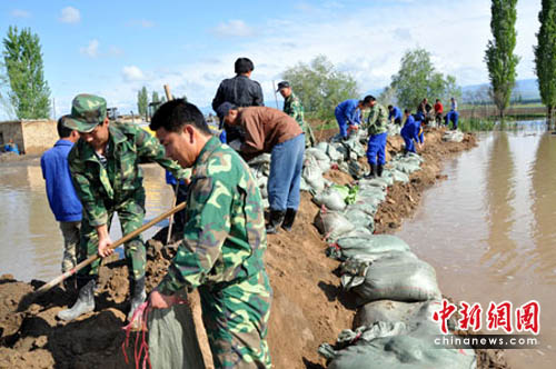 中新网伊宁5月5日电(戚亚平 关文玉)连日来,新疆伊犁巩乃斯河因积雪融化水位急剧上升,出现河水漫堤险情。在巩乃斯河新河大桥两岸,河水已经漫出河堤几十米,部分房屋、草场及农田被淹。