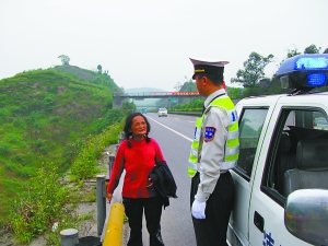 前天上午,高速路执法人员发现了沈孝莲,并送她到涪陵。 (重庆晨报 记者 杜海)