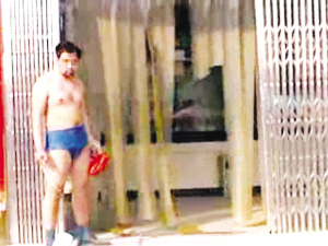 银行工作人员介绍,这名武疯子身上只穿了条三角裤头,手持镰刀冲进银行乱砍乱砸,要胁银行工作人员,声称要取钱,高举着镰刀叫嚷:“快拿出2200元钱给我!”但其无存折。索钱未果后,就用手中的镰刀砍断农业银行的塑料门帘,接着挥舞镰刀冲向在大厅办理业务的群众。群众见状四处奔逃。