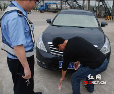 5月5日下午,长潭西高速出现一个“牛人”司机,小车车主高速公路超速行驶被高速交警拦截后,怕媒体曝光,竟然用百元钞票遮挡机动车号牌。这一举动让在场的高速交警和路人哭笑不得。
