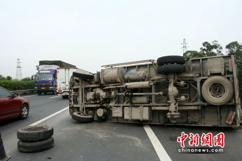 中新网成都5月6日电(张浪)5月6日下午3时许,成都市绕城高速成龙路段往成渝高速方向25公里处发生一起交通事故,一辆大货车在行进途中由于右后轮飞出而发生侧翻,事故发生时该路段没有其他过往车辆,没有造成其他车辆安全事故,整个事故也未造成人员伤亡。(完)