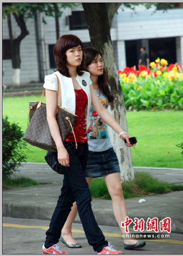 笔者来到暨南大学、广东美术学院,看到不少女大学生都打扮时髦,不管是身上的别致的小外套,浪漫的碎花裙,还是头上的精致的小发箍,都显示出与美剧里主角类似的潮流感和时尚感。