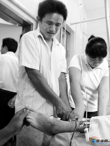 海口市副市长韩美等领导第一时间到医院了解受伤工人伤情,并叮嘱医院全力抢救。可惜,因伤势过重,受伤环卫工人于上午10点半左右经抢救无效死亡。(记者胡诚勇史晓晖实习生黄涛摄影报道)