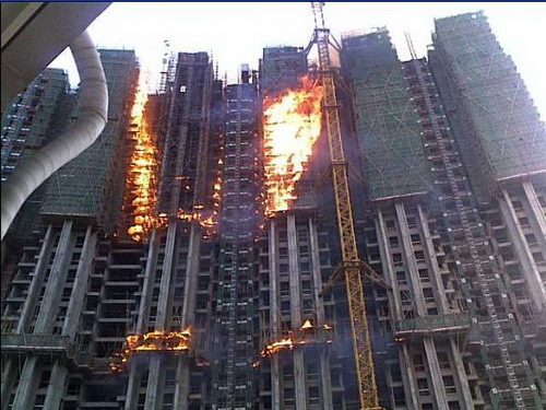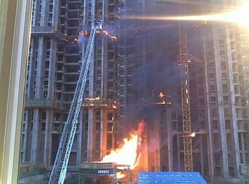 着火建筑共有31层,大火从19层开始燃烧。据一名在顶楼施工的工人说,火灾发生时,他正在顶楼施工,看到烟从下面冒上来,他就立即向工程负责人报告并报警,在场的施工人员及时向楼下疏散,建筑单位也立即展开扑救,无奈火借风势,很快向四周蔓延。