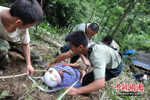为了防止给伤者造成2次伤害,消防战士将自己佩戴的消防头盔小心翼翼地佩戴到受伤人员的头上。18时15分,一名张姓搬运工被消防战士拉上来送上救护车;18时46分,另一名受伤的叶姓搬运工又被拉上来。19时20分许,受伤的甘姓青年男子也被救上来;19时30分,遇难妇女被拉上公路并送往殡仪馆。经过近4个小时的紧张接力大营救,4名幸存者全部被成功救出并送往医院治疗。